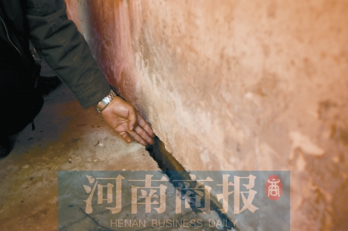 河南商報記者看到,整棟樓的外層也出現(xiàn)了多處裂縫。天明路60號院情況則更加嚴(yán)重,有一棟樓因為傾斜,已經(jīng)與地面形成一條三指寬的縫隙。