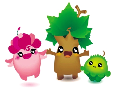 造型以綠色為主色調(diào),園藝氣息濃厚,頭頂不同的花草造型,體現(xiàn)園藝豐富的藝術(shù)形態(tài),手拉手相伴而走,體現(xiàn)自然與人類(lèi)和諧共生的發(fā)展理念。身體的圖案是中國(guó)青銅器花紋,凸現(xiàn)與中華文明的淵源。