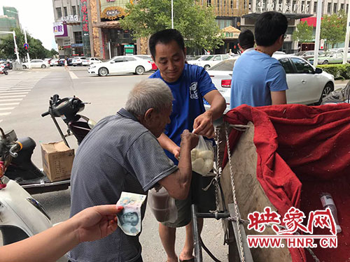 8月23日中午,在鄭州市福元路英協(xié)路路口,愛心市民注意到了正在賣大蒜的兩位老人,紛紛上前搶購。