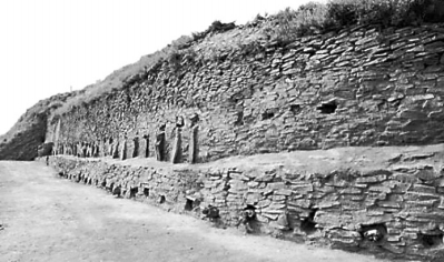 石峁遺址的皇城臺(tái)東護(hù)墻北段上部第二、三階護(hù)墻 資料圖