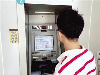 點擊旁邊的確認(rèn)鍵后,屏幕出現(xiàn)攝像頭所攝的適時畫面。面對鏡頭,幾秒鐘時間,系統(tǒng)識別成功,彈出了“請輸入手機號或身份證號”的界面。按提示操作,再輸入取款金額、密碼,就能成功取出錢。