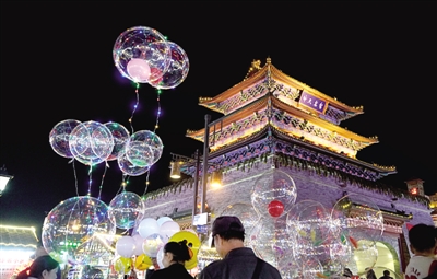 “發(fā)光氣球”街頭俏銷 鄭報融媒記者 馬健 圖