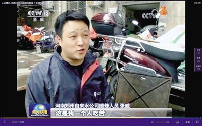 自來(lái)水公司對(duì)“短袖哥”張威進(jìn)行獎(jiǎng)勵(lì)