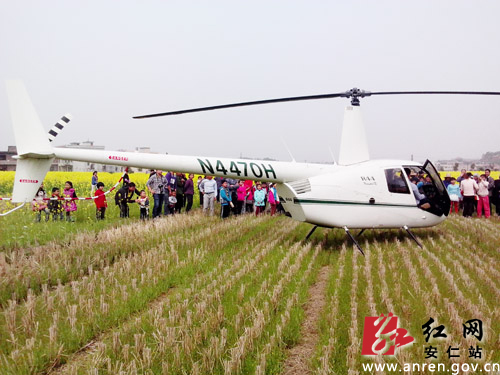 原標題:游客駕直升機來安仁觀賞油菜花引圍觀(圖)
