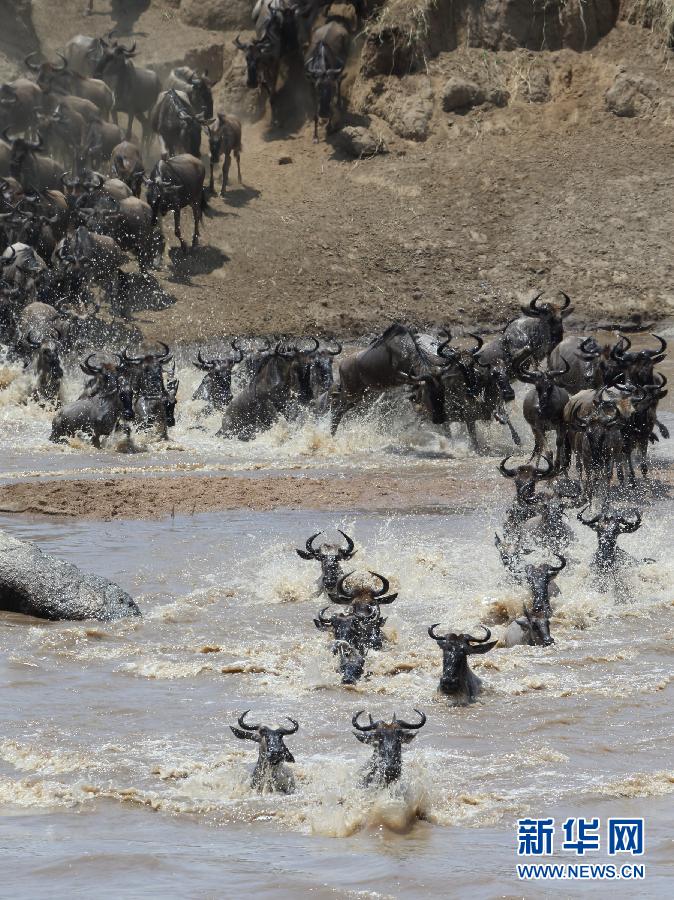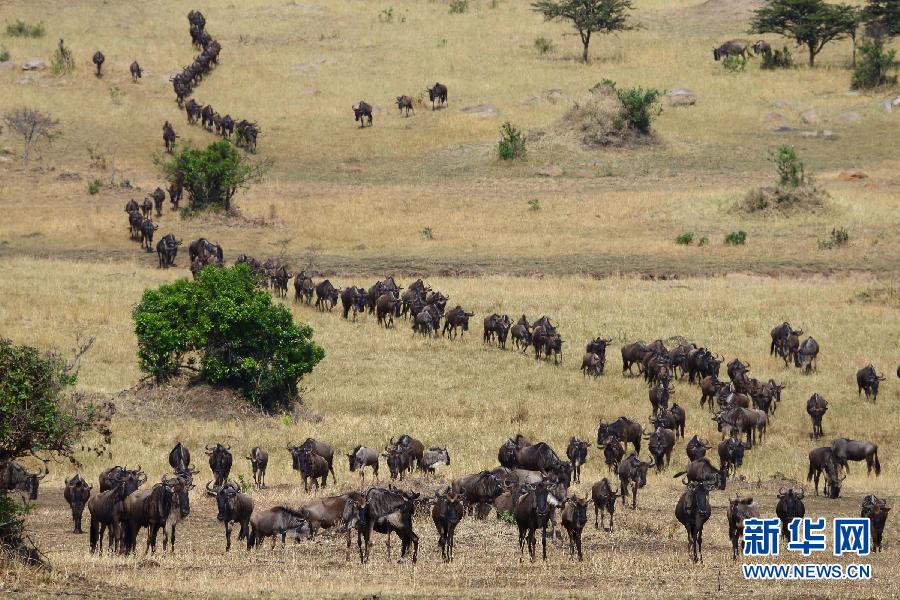 這是8月17日在坦桑尼亞塞倫蓋蒂國(guó)家公園內(nèi)拍攝的角馬遷徙隊(duì)伍。每年7月至9月是坦桑尼亞的旱季,為了追逐水源和青草,以角馬和斑馬為主的數(shù)以百萬(wàn)計(jì)的食草動(dòng)物從塞倫蓋蒂向肯尼亞馬賽馬拉遷徙。這場(chǎng)“地球上最壯觀的動(dòng)物大遷徙”全程超過(guò)1000公里,動(dòng)物在往返途中需兩次渡過(guò)鱷魚(yú)出沒(méi)、危機(jī)重重的馬拉河。新華社記者張平攝