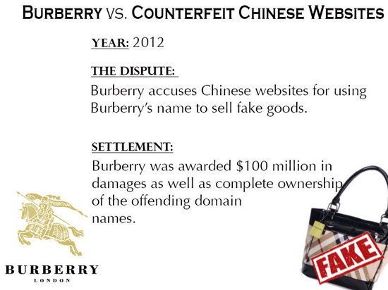 結果:Burberry獲得1億美元賠償,并獲得一個永久性授予,那些侵權域名將被轉移至Burberry網站