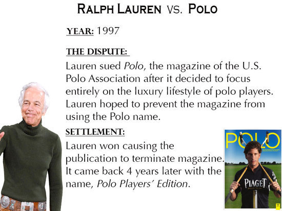 糾紛:Ralph Lauren禁止美國馬球協(xié)會雜志在馬球運動配件方面的產品使用“Polo”名稱