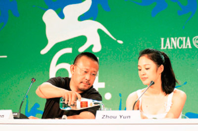 2001年,還是新人的她剃了光頭在《天地英雄》中反串慧覺(jué)和尚,并結(jié)識(shí)了姜文。因?yàn)橹茼嵲谥醒霊騽W(xué)院時(shí)的老師張仁里,同時(shí)也是姜文當(dāng)年的專(zhuān)業(yè)課老師,這對(duì)年齡相差15歲的師兄妹,更加有了共同語(yǔ)言。得到了姜文的青睞,周韻被姜文推薦給自己正在拍的另一部戲,這就是由陳逸飛執(zhí)導(dǎo)的電影《理發(fā)師》。
