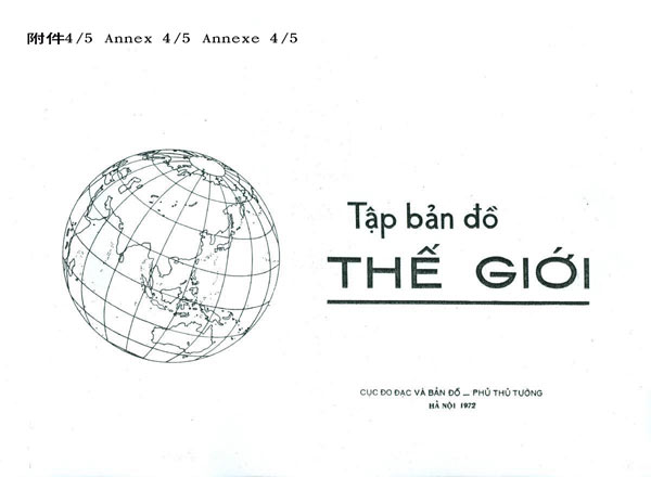 1972年5月越南總理府測(cè)量和繪圖局印制的《世界地圖集》,用中國(guó)名稱標(biāo)注西沙群島(見(jiàn)附件4)。1974年越南教育出版社出版的普通學(xué)校九年級(jí)《地理》教科書,在《中華人民共和國(guó)》一課(見(jiàn)附件5)中寫道:“從南沙、西沙各島到海南島、臺(tái)灣島、澎湖列島、舟山群島,……這些島呈弓形狀,構(gòu)成了保衛(wèi)中國(guó)大陸的一座‘長(zhǎng)城’。”