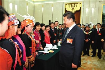 昨日,習近平參加廣西團審議,代表黨中央、國務院,向廣大婦女代表、婦女委員及全國各界婦女同胞,致以誠摯的節(jié)日問候。 新華社記者 蘭紅光 攝
