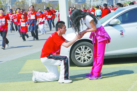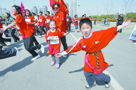 3月27日上午,鄭開國(guó)際馬拉松賽五公里小馬拉松比賽在鄭東新區(qū)舉行,情侶方隊(duì)、親子方隊(duì)等各具特色的參賽隊(duì)伍,給緊張的比賽帶來了輕松和快樂。