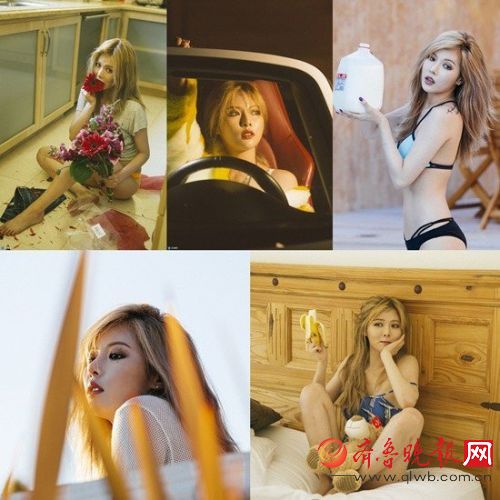 泫雅在這一系列照片中,毫不吝嗇地與大家分享自己的好身材和修長美腿。