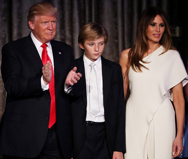 國際在線專稿:據(jù)英國《每日郵報(bào)》11月20日報(bào)道,美國新當(dāng)選總統(tǒng)特朗普日前表示,自己將于明年1月20日入住白宮,但妻子梅拉尼婭和10歲的小兒子巴倫要繼續(xù)住在紐約的特朗普大廈,直到明年6月巴倫本學(xué)年學(xué)業(yè)結(jié)束。此番言論卻惹惱了紐約當(dāng)?shù)厥忻?,他們?dān)心安檢、封路等措施會更加惡化城市的交通狀況。