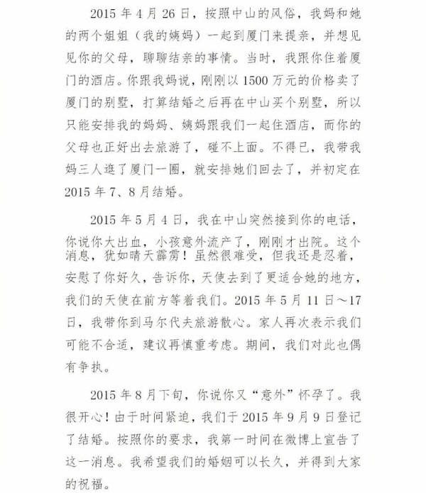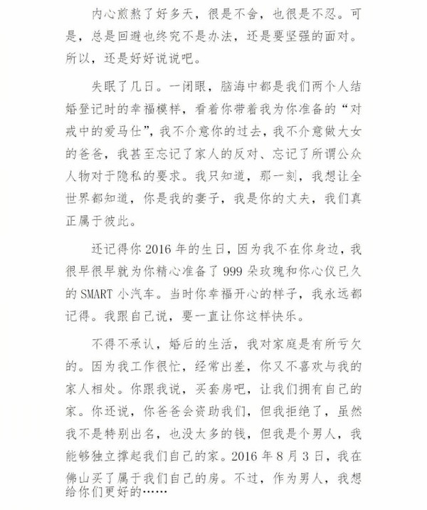 5月23日凌晨,劉洲成發(fā)微博回應家暴致前妻林苗流產及要求前妻出錢買房等傳聞。劉洲成更是曬出了昔日的聊天記錄、代付清單、借記卡賬戶歷史明細清單等證據,疑似反駁前妻所述不實。劉洲成長文截圖6 劉洲成長文截圖7