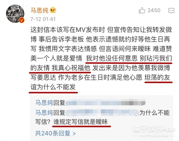 原來(lái)是因?yàn)轳R思純?cè)谖⒉懥艘环忾L(zhǎng)信祝福李榮浩的生日,她還調(diào)侃這是一封“被迫”的信。