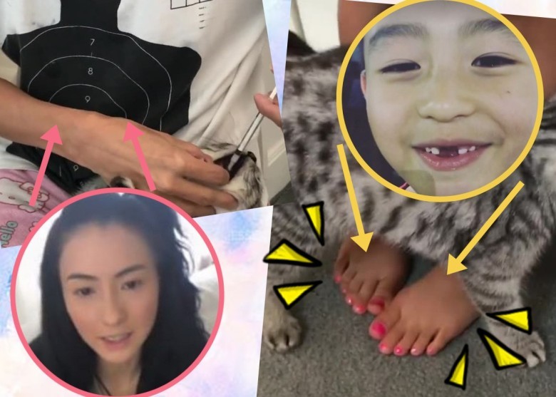 張柏芝給貓喂藥 發(fā)現(xiàn)小Q涂粉紅腳指甲油