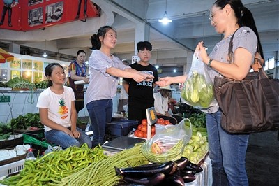 鄰近攤位的關(guān)系也要處好,上午蔬菜旺銷時(shí),不能和臨近的攤位相互殺價(jià)。孩子們的大聲吆喝,吸引了不少顧客。他們已經(jīng)像個(gè)賣菜的“老把式”,有時(shí)為顧客多加個(gè)塑料袋,抑或少算個(gè)零頭,顧客走時(shí)會(huì)特別表示感謝。