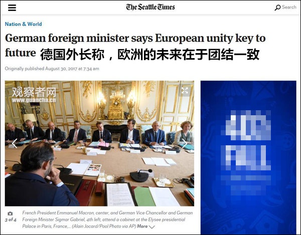 據(jù)美國《西雅圖時報》30日報道,德國外長加布里爾在巴黎出席一次駐外使節(jié)會議上,呼吁歐洲應(yīng)當團結(jié)一致,制定出統(tǒng)一的對華戰(zhàn)略,也敦促中國不要試圖分化歐洲,而應(yīng)遵守“一個歐洲”原則。