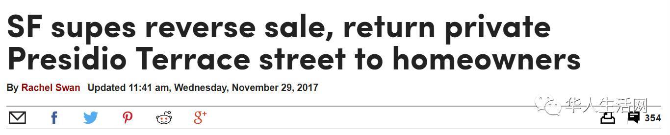 一對住在硅谷的年輕華裔夫婦以9萬元購得舊金山高尚住宅區(qū)太平洋崗的一條小街道Presidio Terrace,35棟超級豪宅業(yè)主試圖拿回街道所有權(quán)。舊金山市參事會昨日就事件舉行聽證會,市參事會最后以7對4通過,取消Presidio Terrace街道的買賣。
