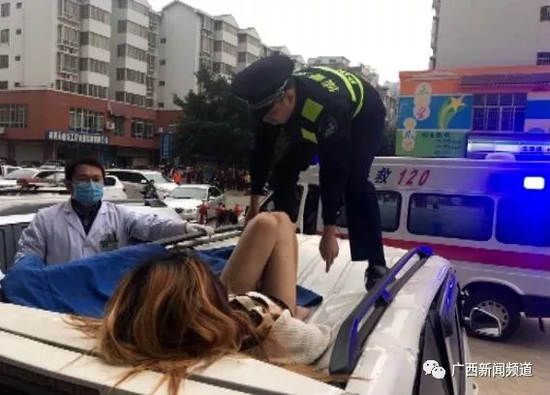 覃警官稱,年輕女子由于受傷嚴重,無法言語,幾次掙扎著想坐立起來。他勸她別動,等待醫(yī)護人員。隨后,120醫(yī)護人員和城北派出所民警也趕到現(xiàn)場,年輕女子被抬上救護車送往醫(yī)院搶救。到醫(yī)院后,城北派出所民警立即協(xié)助醫(yī)院辦好了相關入院手續(xù)。