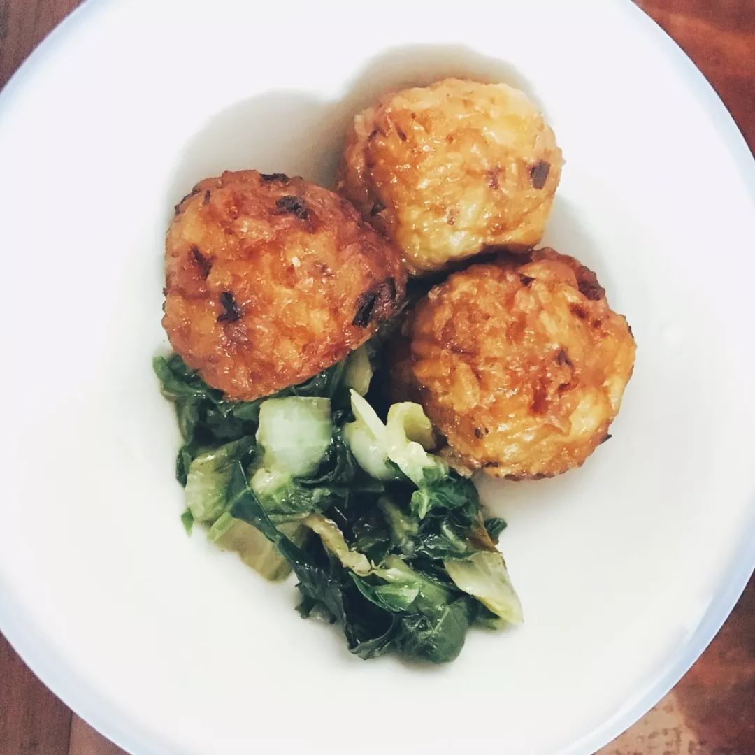 家里的習(xí)俗,小孩子年夜飯一定要先吃一口青菜,“清清濟濟”(家鄉(xiāng)方言),吃一口圓子,“團團圓圓”。小時候,外婆每年都會給我們先夾這兩樣到碗里,笑呵呵地讓我們吃。她走后,我們?nèi)匀槐3至诉@個習(xí)慣。