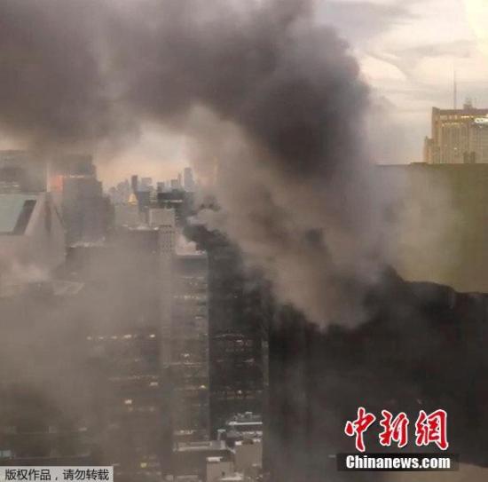 資料圖片:當(dāng)?shù)貢r(shí)間2018年1月8日,美國(guó)紐約,據(jù)美國(guó)CBS網(wǎng)站報(bào)道,位于紐約市曼哈頓第五大道與56街交叉處的特朗普大廈起火,現(xiàn)場(chǎng)濃煙滾滾。