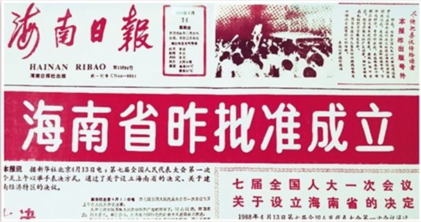 1988年4月14日,海南日報(bào)刊發(fā)海南省批準(zhǔn)成立的新聞。本報(bào)記者 何 偉攝