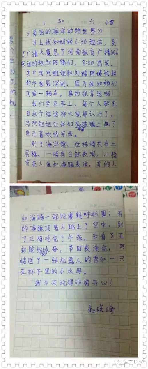 趙瑛琦小朋友當(dāng)天晚上回去就寫下當(dāng)天所感,