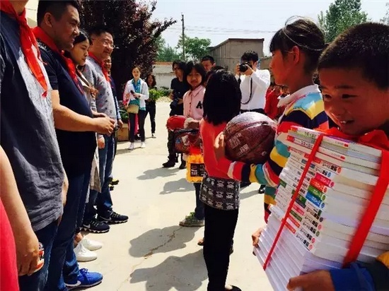 根據(jù)孩子們的現(xiàn)實需求和愿望,我們此次特別為孩子帶來了千本圖書以及腰鼓樂器、足球等體育用品,并捐獻給學校。