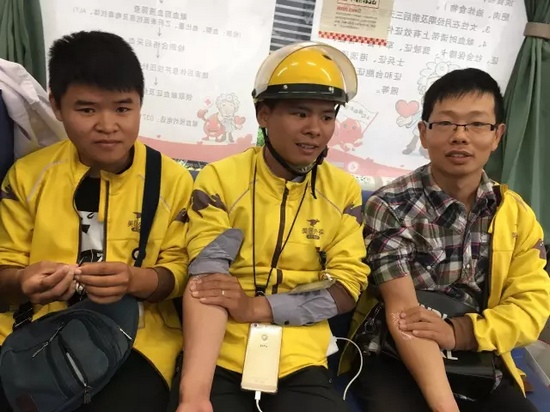 在附近的外賣小哥聽到有獻(xiàn)血活動,送完外賣后立刻趕來,獻(xiàn)完血后又繼續(xù)工作去了。