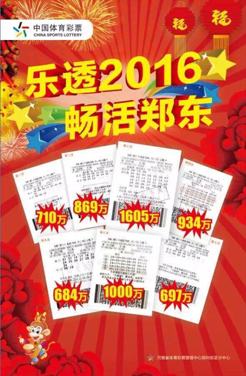 進(jìn)入2016年以來(lái),超級(jí)大樂(lè)透玩法500萬(wàn)元、千萬(wàn)元大獎(jiǎng)?lì)l頻花落綠城,讓鄭州市廣大彩民朋友充分感受到了中國(guó)體育彩票的魅力!據(jù)統(tǒng)計(jì),截止9月中旬,鄭州東區(qū)分中心所轄體育彩票銷(xiāo)售網(wǎng)點(diǎn)已經(jīng)中出500萬(wàn)元以上大樂(lè)透游戲大獎(jiǎng)7個(gè),最高中獎(jiǎng)金額高達(dá)1605萬(wàn)元。