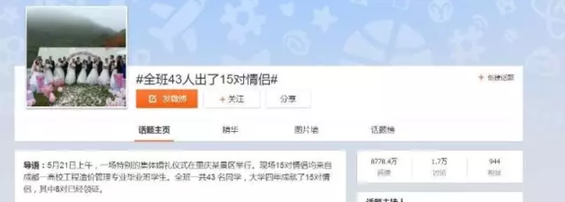 微博“全班43人出了15對情侶”話題