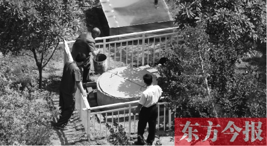 昨日9時,記者再次來到位于秦嶺路與嵩山路交叉口的九龍城龍棲尚都小區(qū),發(fā)現(xiàn)位于該小區(qū)景觀草坪的兩處二次加壓水箱的周圍,已經(jīng)分別被鋁質(zhì)材料的正方形護(hù)欄圍起來,旁邊放著兩個不銹鋼防護(hù)罩,幾名工人正在水箱旁施工。