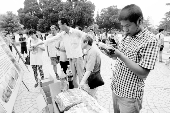 昨天上午,紫荊廣場(chǎng),在公安機(jī)關(guān)繳獲的假飲料、糖貨展臺(tái)前,不少市民拿著假冒的可樂翻來覆去地看,想找出破綻。