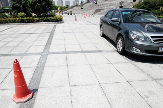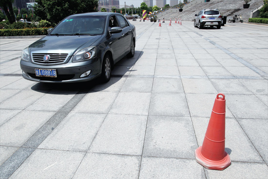 記者坐在駕駛位置,車輛右前保險杠與右前車輪夾角處,是視覺盲區(qū);即使將車座調(diào)至最高位置,如果物體低于車前引擎蓋高度,仍然無法發(fā)現(xiàn)障礙物。