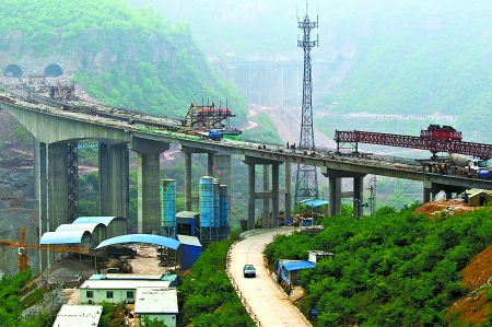 4月24日,林(州)長(治)高速公路林州太行大峽谷段正在緊張施工。該段工程全長2.91公里,施工線路中有3座大橋、3條隧道,地質(zhì)條件復(fù)雜,施工難度大。承擔(dān)施工任務(wù)的中鐵大橋局的建設(shè)者們克服種種困難,現(xiàn)已基本完成主體工程建設(shè),確保了今年11月份通車。