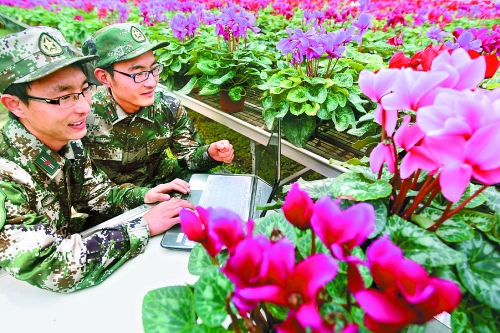 12月19日,鄢陵縣柏梁鎮(zhèn)民兵在網(wǎng)上銷售花卉。今年,該縣在民兵中開(kāi)展了“一名民兵一個(gè)項(xiàng)目”活動(dòng),并成立了“民兵創(chuàng)業(yè)示范基地”,引導(dǎo)民兵選擇回報(bào)率高、銷路相對(duì)暢銷的花卉作為創(chuàng)業(yè)項(xiàng)目,帶動(dòng)周邊農(nóng)戶種花致富。牛書培 權(quán)國(guó)棟 攝