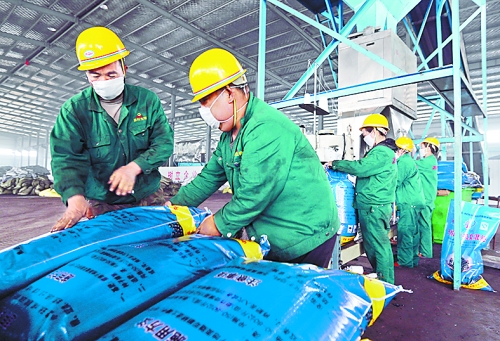 淅川縣源科生物科技有限公司的員工在生產(chǎn)出口俄羅斯等國(guó)家的復(fù)合肥
