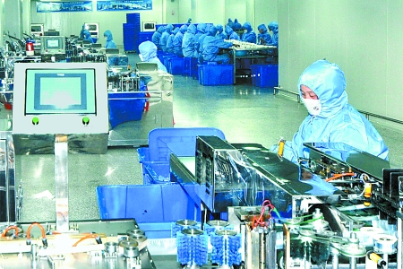 3月17日,工人們在郟縣醫(yī)療器械孵化園內(nèi)工作。該孵化園區(qū)以圣光集團(tuán)為依托,吸引了20家注射器、手術(shù)包等醫(yī)療器械生產(chǎn)研發(fā)企業(yè)入駐,年創(chuàng)利稅9000萬元,并為當(dāng)?shù)靥峁┝?000多個(gè)就業(yè)崗位。 王堯 攝