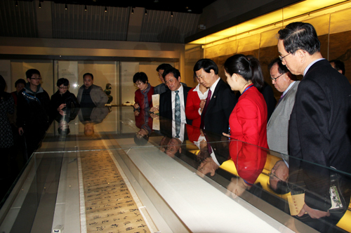 據(jù)悉,參觀河南博物院是此次由河南省中韓文化交流協(xié)會、河南省形象設(shè)計協(xié)會邀約的韓國文化交流團訪豫的第二站(第一站參觀訪問了開封中國翰園碑林),第三站是在鶴壁市進行文化和經(jīng)貿(mào)方面的交流和對接。