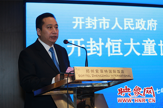 當(dāng)日下午,在河南省委常委、常務(wù)副省長翁杰明和恒大集團(tuán)董事局主席許家印等嘉賓見證下,開封市長侯紅和恒大集團(tuán)常務(wù)副總裁兼恒大旅游集團(tuán)董事長肖恩代表雙方在合作協(xié)議書上簽字。