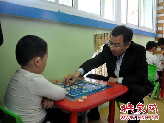 滎陽市長王新亭與孩子一起下象棋