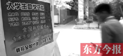 “親愛的同學(xué)們,還在為每個月超支的生活費擔(dān)心嗎?還在為沒錢買‘愛瘋’著急嗎?還在為沒錢沒法‘說走就走’失落嗎?別發(fā)愁,看這里,無抵押貸款,金額500到5000元,六個月內(nèi)還清,絕無壓力。”