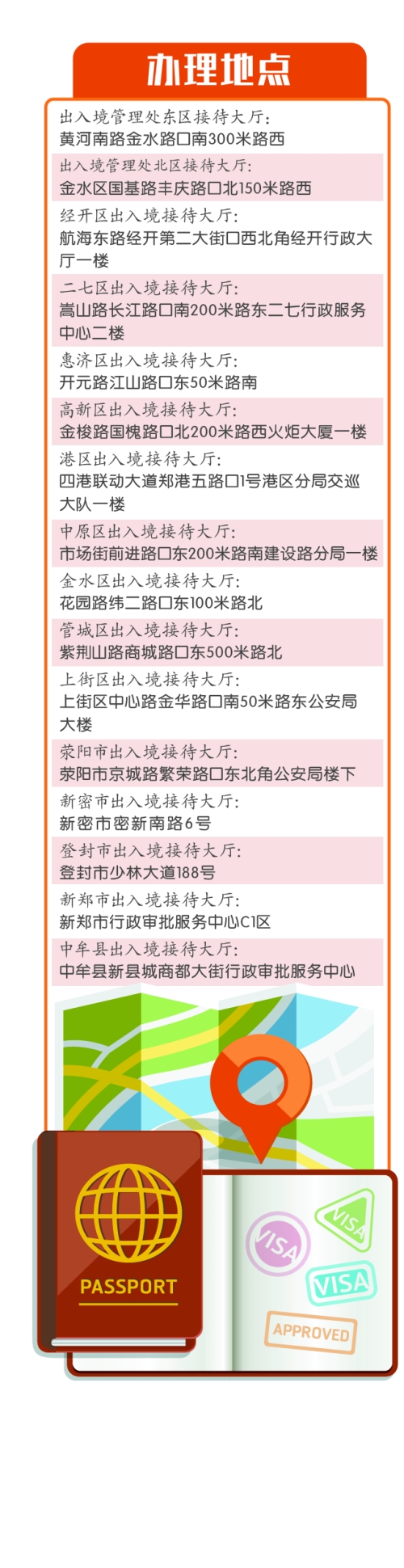 要辦理出入境證件,不一定扎堆到位于鄭東新區(qū)的出入境管理處接待大廳。河南商報記者了解到,居住證持有人可在鄭州市各個出入境接待大廳辦理,包括出入境管理處東區(qū)接待大廳及北區(qū)接待大廳、各個區(qū)(縣)出入境接待大廳共計16個辦事大廳。