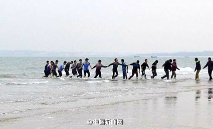 12月7日,河北秦皇島一黃衣女子獨(dú)自向海里走去,就快被海水淹沒。燕山大學(xué)18名學(xué)生頂著寒風(fēng),在冰冷的海水中手拉手,連成一條三四十米長(zhǎng)的生命鎖鏈,將女子被攙扶上岸,一名男子還將自己的棉衣披在她身上。為這些勇敢的大學(xué)生們點(diǎn)個(gè)贊!