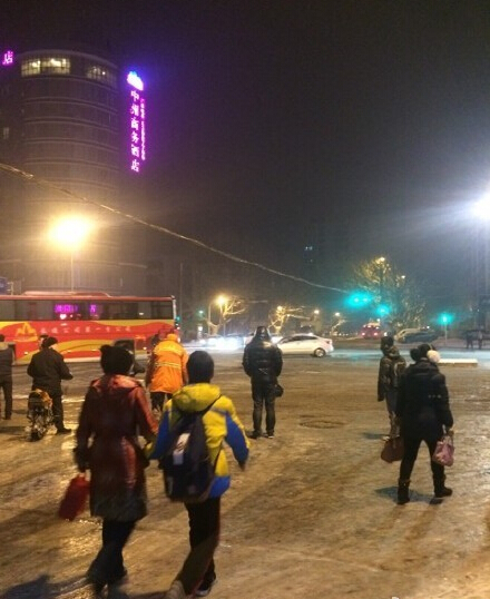 雪停了,但是路上的雪被車碾軋之后比較光滑。@大河寒江雪 :南陽路快速公交站,等了半小時(shí)沒見一輛公交。@清qing茶:桐柏路農(nóng)業(yè)路交叉口已經(jīng)有兩輛公交車因路滑橫到馬路上了??傊鲩T不管是開車還是騎車還是步行都要千萬小心!遲到不要緊,安全才第一!