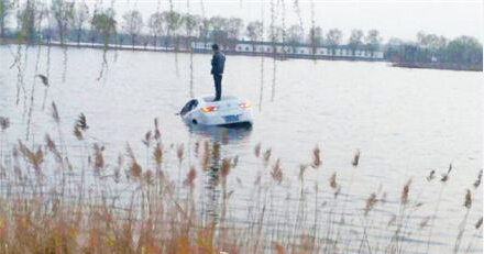 10、濮陽轎車落水車主站車頂?shù)染?倆保安跳湖救人!