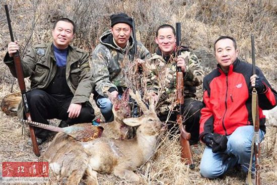 中國(guó)富人展示一場(chǎng)狩獵后的成果