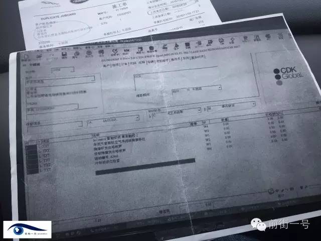在客戶提供的“施工單”復(fù)印件上,前街一號記者看到上面記錄了陳先生的個人及所購車輛詳細(xì)信息。在“描述”一欄中,記者看到了包括“橫撐桿發(fā)生咯吱聲”、“后彈簧發(fā)出咯吱聲”、“車頂天窗面板空氣倒流板彈簧移位”等六條記錄,且每條記錄后均有以“K”打頭的活動編號。
