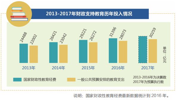 幼有所育、學(xué)有所教。自2013年以來,全國(guó)財(cái)政花在教育上的錢逐年增加。2018年,這一支出預(yù)算將繼續(xù)增加至31437億元。資金將用于支持發(fā)展公平優(yōu)質(zhì)教育,改善貧困地區(qū)義務(wù)教育薄弱學(xué)?;巨k學(xué)條件等。